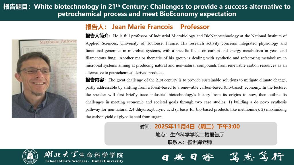 学术报告:White biotechnology in 21th Century: Challenges to provide a success alternative to petrochemical process and meet BioEconomy expectation