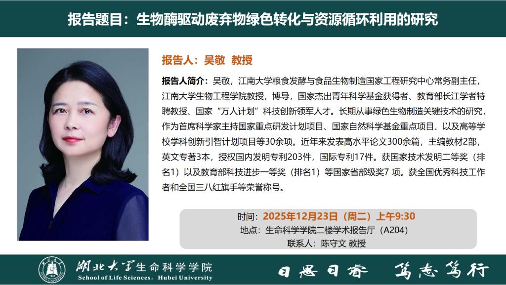 学术报告:生物酶驱动废弃物绿色转化与资源循环利用的研究