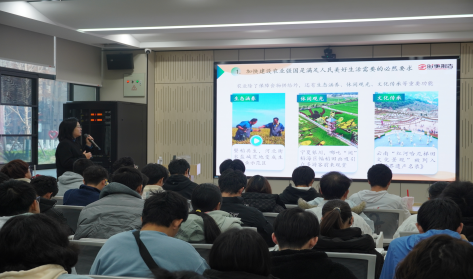 (通讯 陈龙贞 摄影 董龙珊)12月11日上午,在武昌校区一站式学生社区思德厅,校党委常委、副校长张冬卉教授以“阔步迈向农业强国”为题,为学院2025级生物科学类专业新生讲授形势与政策课。